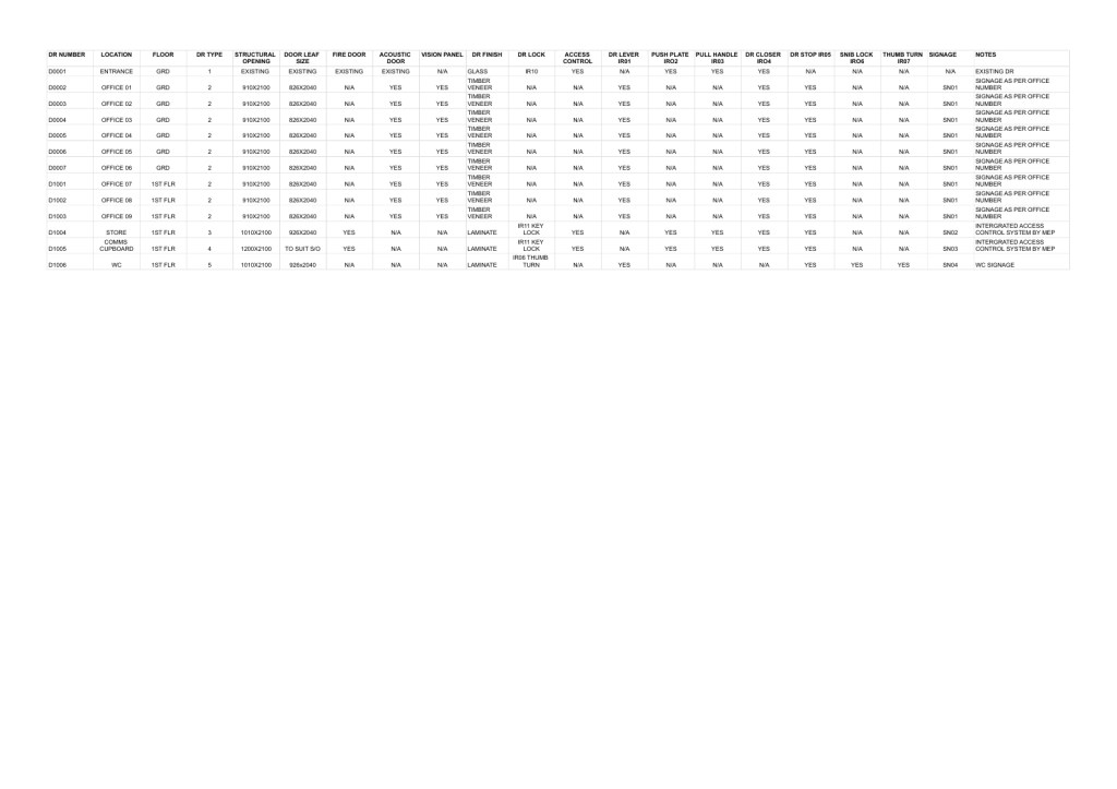 Produce a door schedule with aligned ironmongery schedule and a partition plan with door codes all cross referenced.